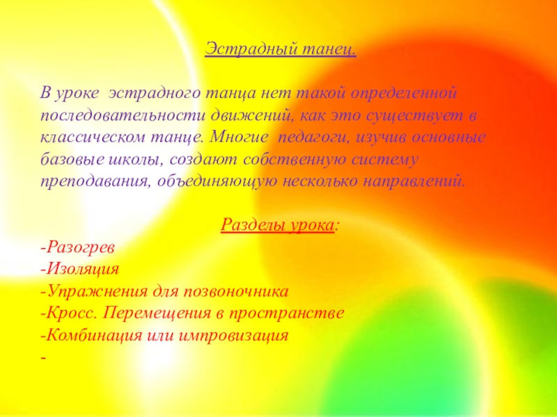 В уроке эстрадного танца нет такой определенной последовательности движений, как