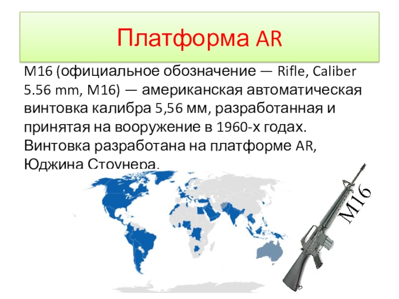 Платформа ARM16 (официальное обозначение — Rifle, Caliber 5.56 mm, M16) — американская автоматическая винтовка калибра 5,56 мм,