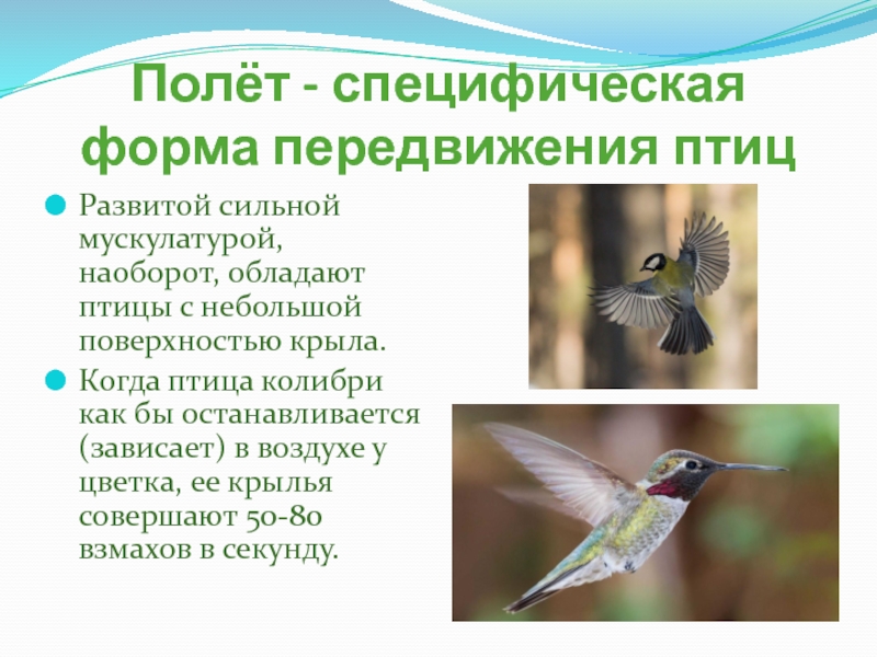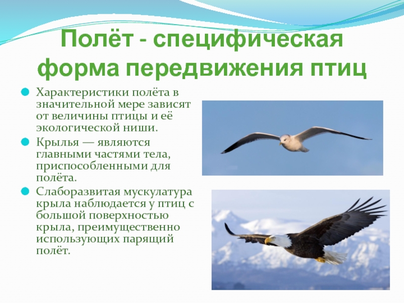 Слайд 25Полёт - специфическая форма передвижения птиц
