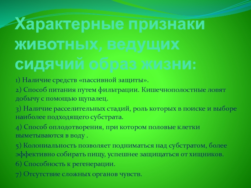 Слайд 2Характерные признаки животных, ведущих сидячий образ жизни:
