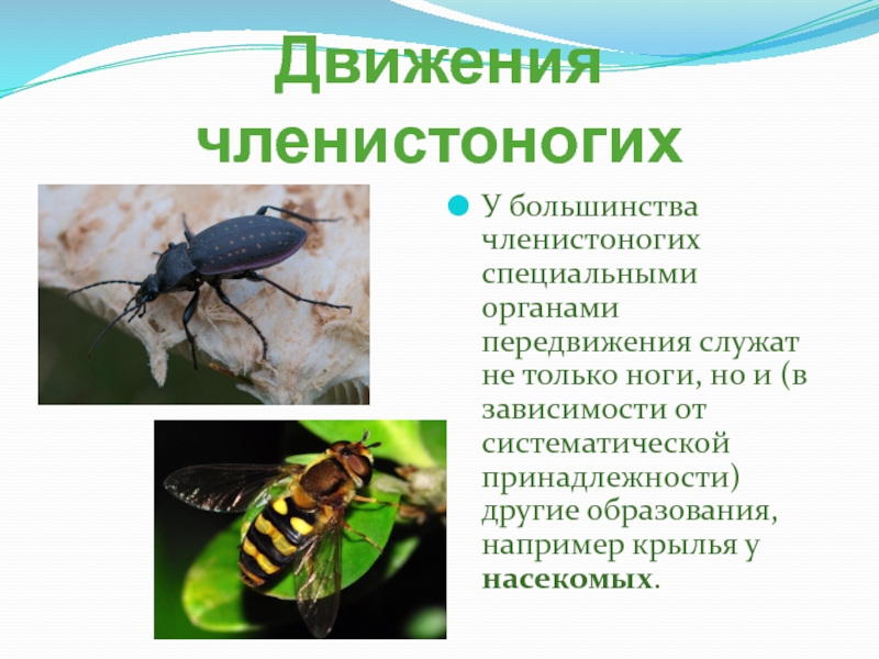 У большинства членистоногих специальными органами передвижения служат не только ноги,