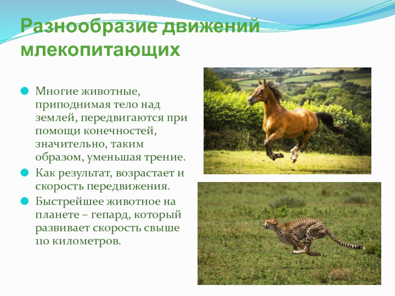 Слайд 27Разнообразие движений млекопитающих
