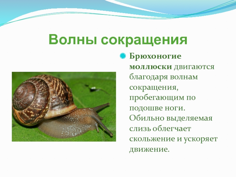 Брюхоногие моллюски двигаются благодаря волнам сокращения, пробегающим по подошве ноги.