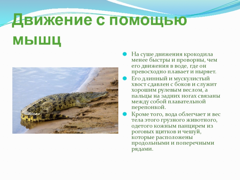 На суше движения крокодила менее быстры и проворны,