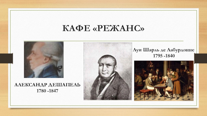 КАФЕ «РЕЖАНС»АЛЕКСАНДР ДЕШАПЕЛЬ1780 -1847Луи Шарль де Лабурдонне1795 -1840
