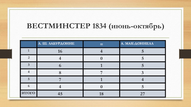 Слайд 6ВЕСТМИНСТЕР 1834 (июнь-октябрь)