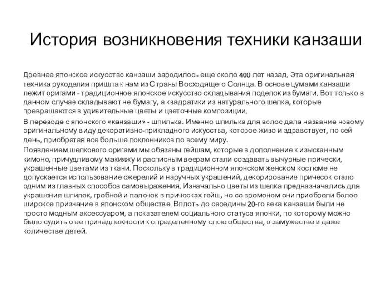 Слайд 3История возникновения техники канзаши