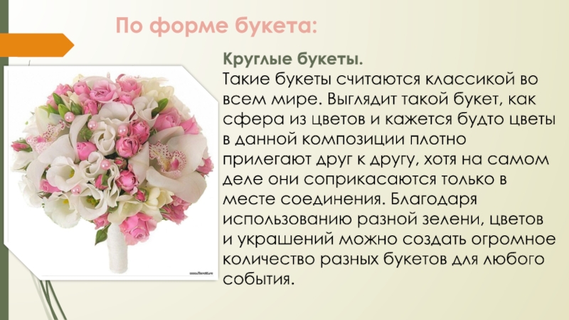 По форме букета:
