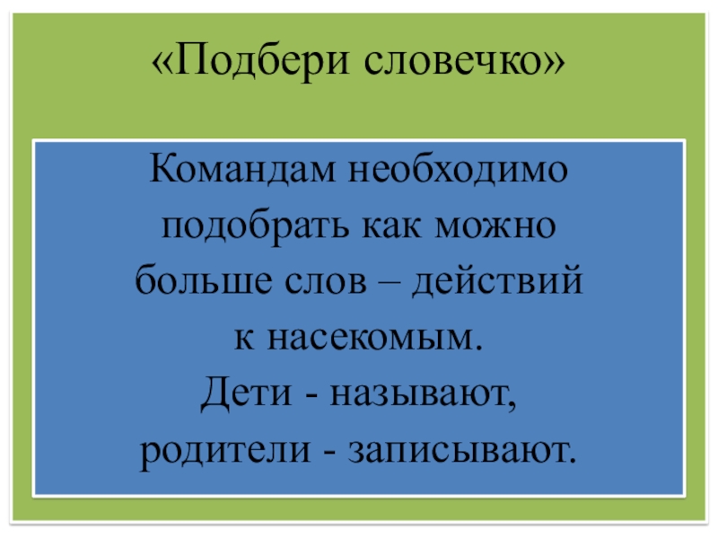 «Подбери словечко»        Командам необходимо подобрать как можно больше слов –