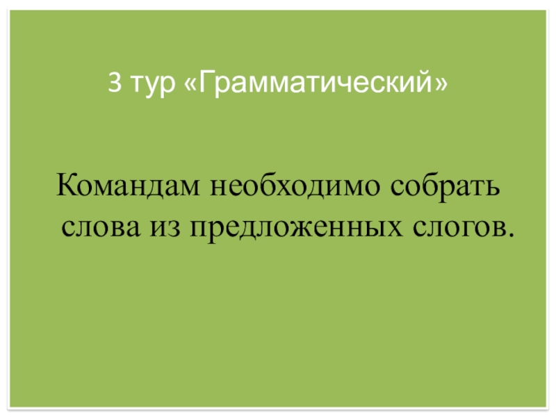 3 тур «Грамматический»        Командам необходимо собрать слова из предложенных