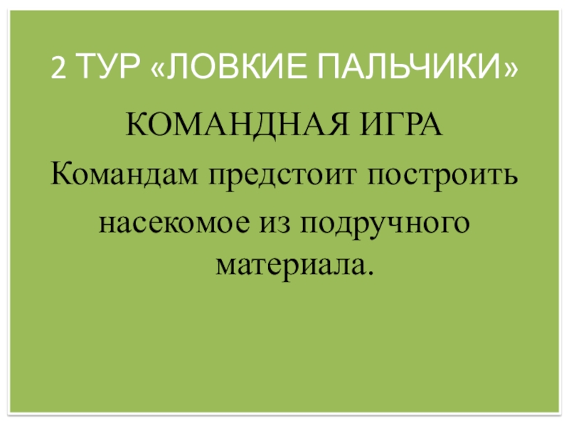 2 ТУР «ЛОВКИЕ ПАЛЬЧИКИ»       КОМАНДНАЯ ИГРАКомандам предстоит построить насекомое из подручного
