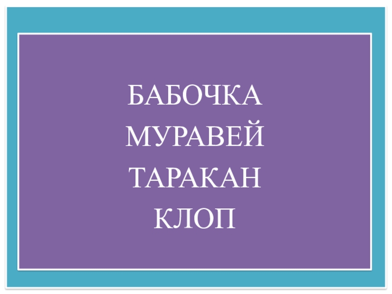 БАБОЧКАМУРАВЕЙТАРАКАНКЛОП