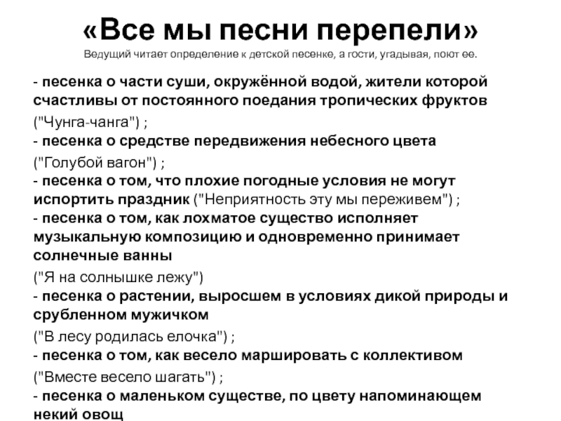 - песенка о маленьком существе, по цвету напоминающем некий овощ