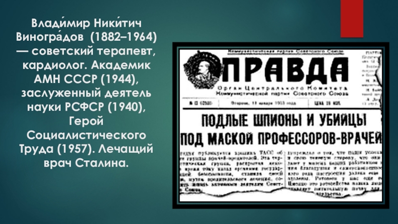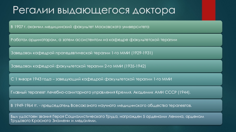 (1944), заслуженный деятель науки РСФСР (1940), Герой Социалистического Труда (1957). Лечащий врач Сталина.