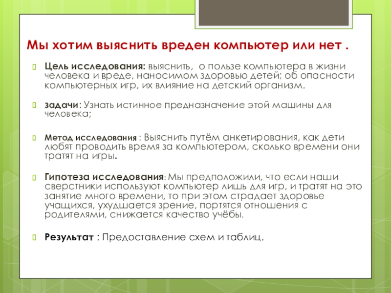 Слайд 3Мы хотим выяснить вреден компьютер или нет .
