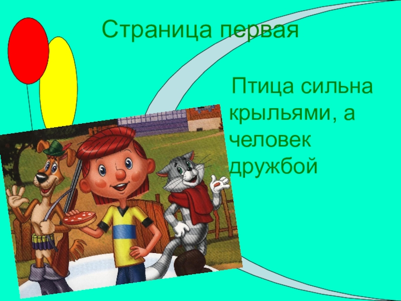 Страница первая  Птица сильна  крыльями, а  человек  дружбой