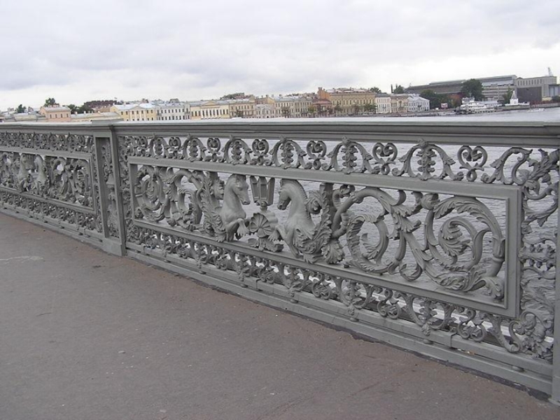 Западная и восточная его стены отделаны рустом, а изящество зданию придают небольшие окна и балконы, украшенные коваными решетками, выполненными в виде вензелей и узоров листьев.