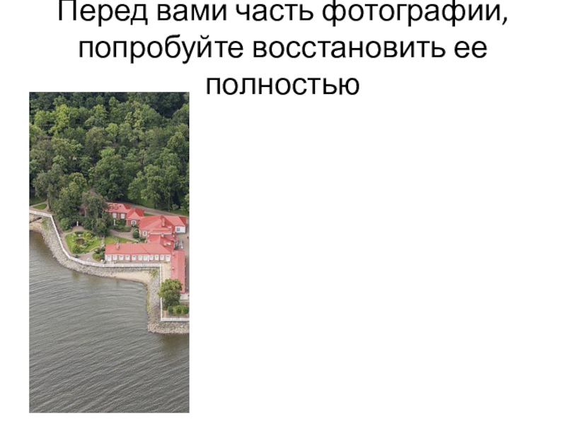 Слайд 27Перед вами часть фотографии, попробуйте восстановить ее полностью