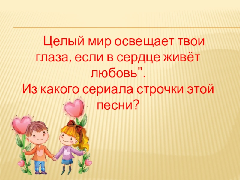 Слайд 7 Целый мир освещает твои глаза, если в сердце живёт любовь".