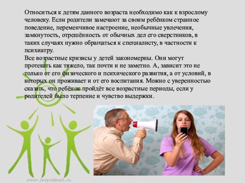 Слайд 13Относиться к детям данного возраста необходимо как к взрослому человеку. Если