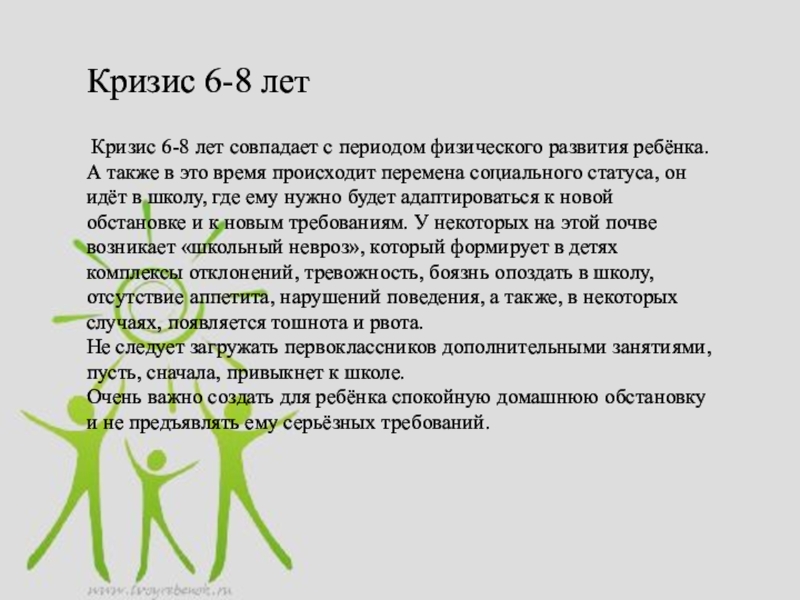 Кризис 6-8 лет совпадает с периодом физического развития ребёнка.