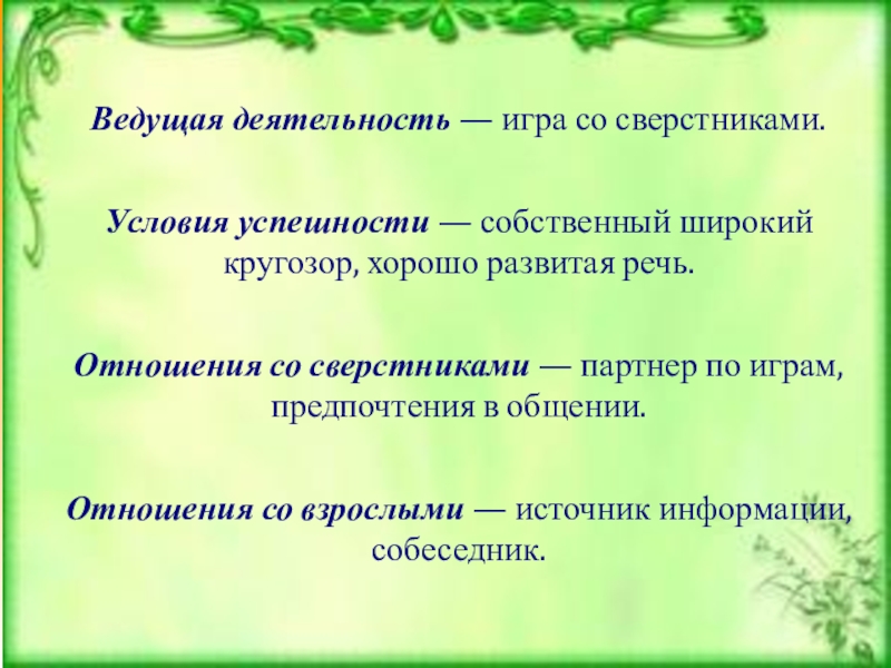 Отношения со сверстниками — партнер по играм, предпочтения в общении.