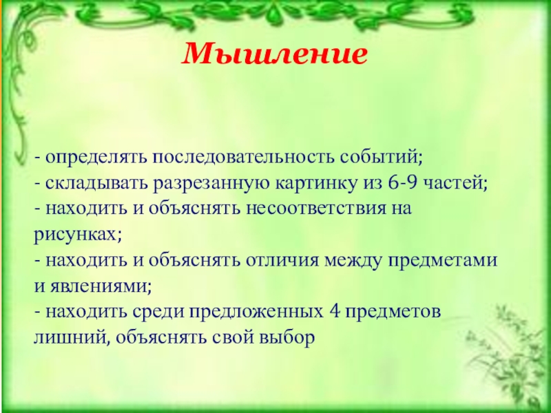 - находить среди предложенных 4 предметов лишний, объяснять свой выбор