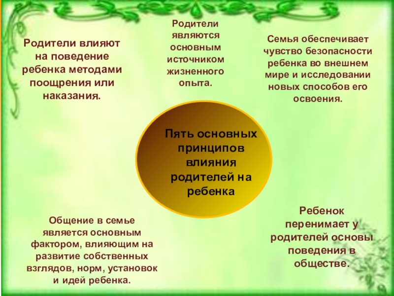 Слайд 17Родители влияют на поведение ребенка методами поощрения или наказания.