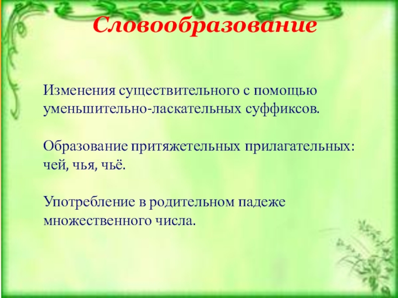 Изменения существительного с помощью уменьшительно-ласкательных суффиксов.