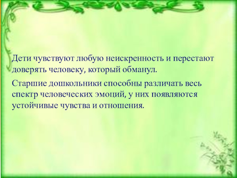 Слайд 11Дети чувствуют любую неискренность и перестают доверять человеку, который обманул.