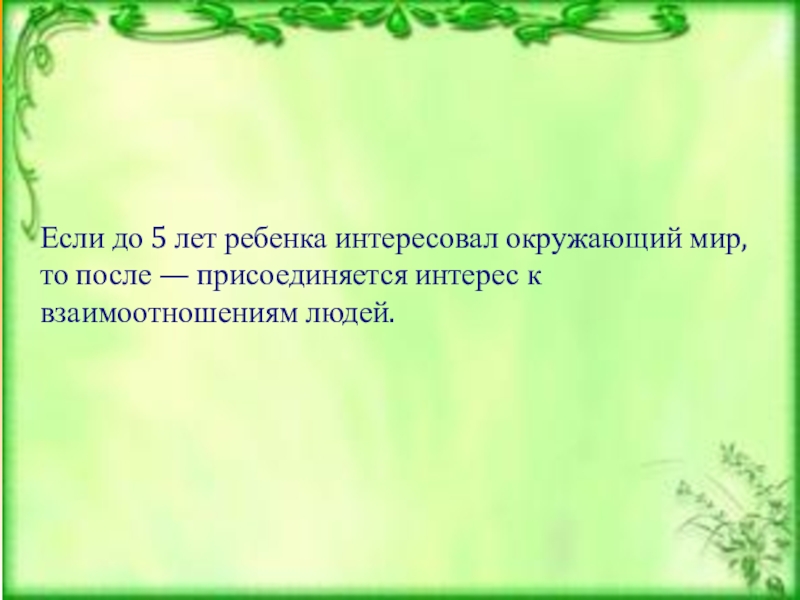 Слайд 10Если до 5 лет ребенка интересовал окружающий мир, то после —