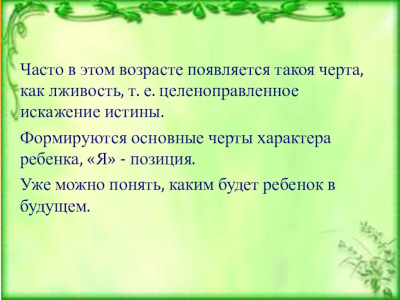 Слайд 15Часто в этом возрасте появляется такоя черта, как лживость, т. е. целеноправленное