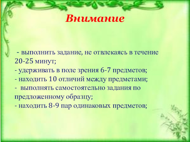 - выполнить задание, не отвлекаясь в течение 20-25 минут;