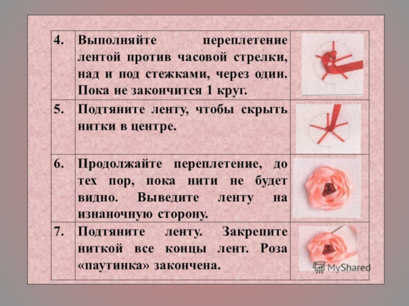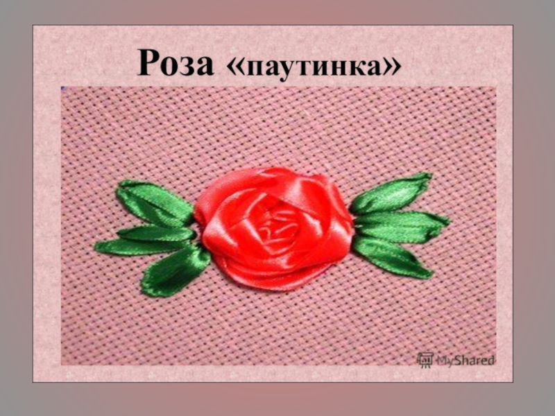 Презентация, доклад на тему Вышивка лентами узора роза паутинка
