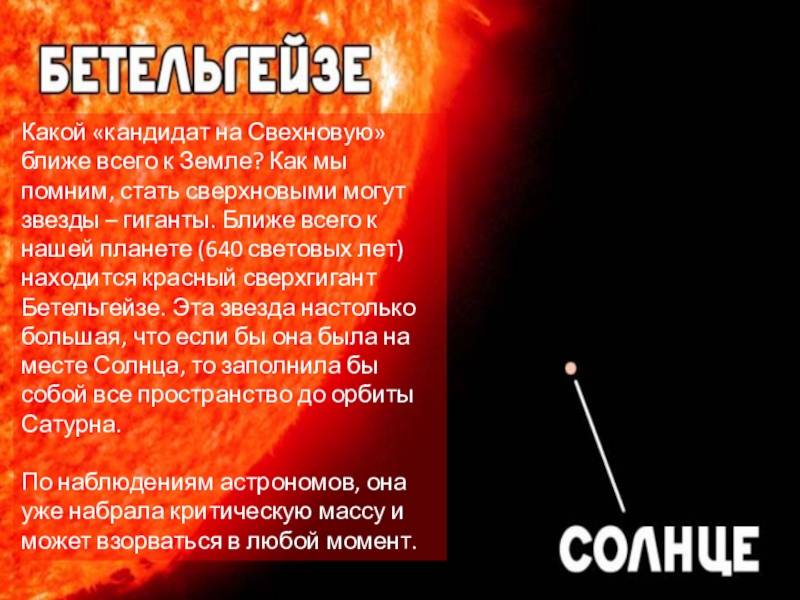 Бетельгейзе может стать вторым Солнцем