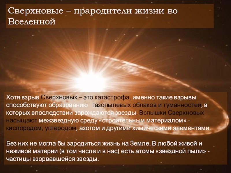 Сверхновые – прародители жизни во Вселенной