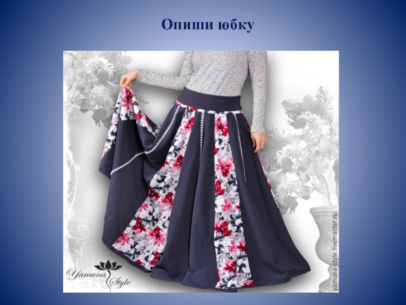 Слайд 25Опиши юбку
