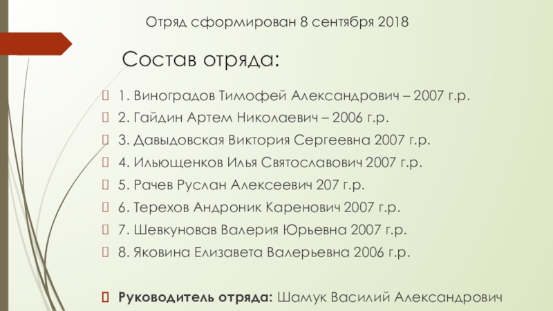 Отряд сформирован 8 сентября 2018