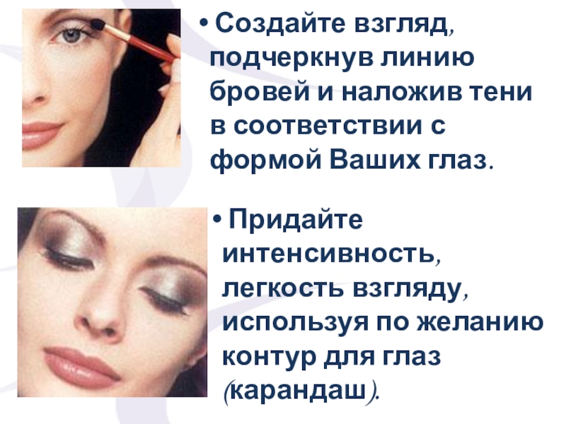Придайте интенсивность, легкость взгляду, используя по желанию контур для глаз (карандаш).