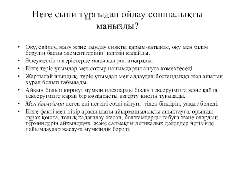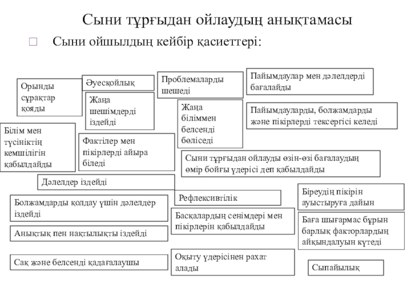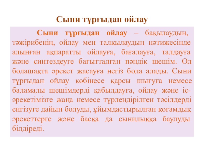 Сыни тұрғыдан ойлауды өзін-өзі бағалаудың өмір бойғы үдерісі деп қабылдайды