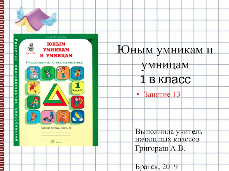 Юным умникам и умницам 1 в классЗанятие 13Выполнила учитель начальных классовГригораш А.В.Братск, 2019