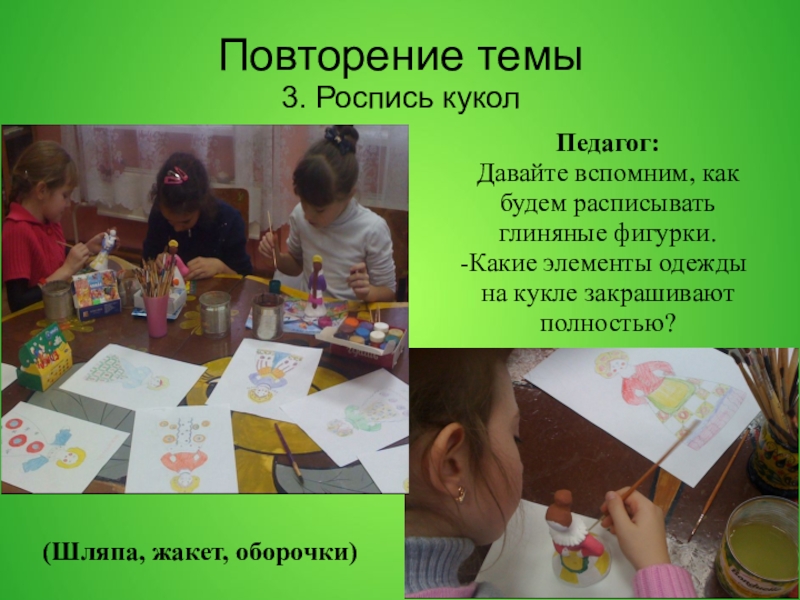 - Скажите, пожалуйста, понравилось ли вам занятие? Какая игрушка-барышня кроме вашей понравилась вам еще и почему?
