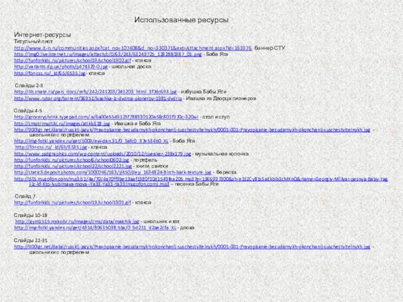 Использованные ресурсы