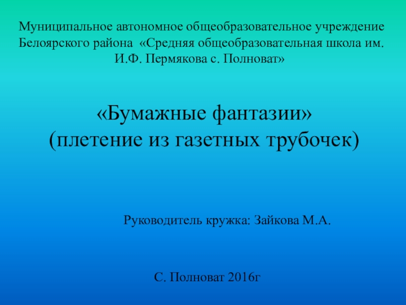 общеобразовательное учреждение Белоярского района «Средняя общеобразовательная школа им. И.Ф. Пермякова с. Полноват»