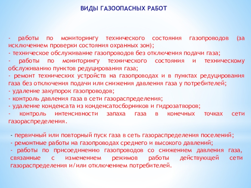 ВИДЫ ГАЗООПАСНЫХ РАБОТ