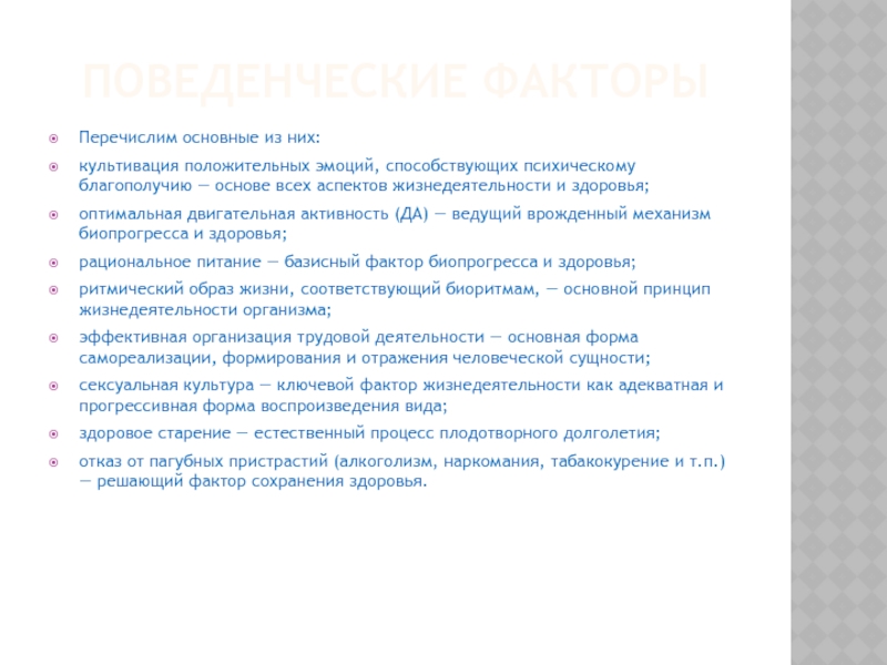 отказ от пагубных пристрастий (алкоголизм, наркомания, табакокурение и т.п.) — решающий фактор сохранения здоровья.