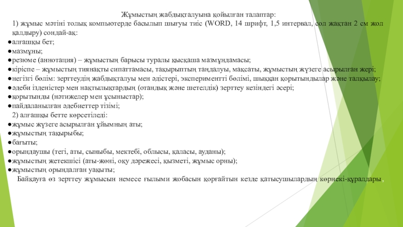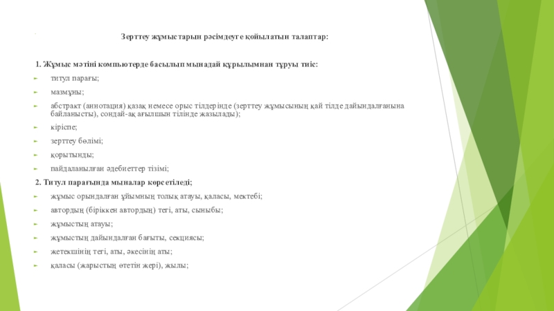 Зерттеу жұмыстарын рәсімдеуге қойылатын талаптар: