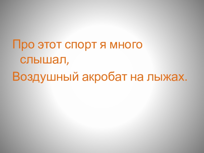 Про этот спорт я много слышал,Воздушный акробат на лыжах.