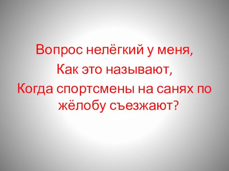 Вопрос нелёгкий у меня,Как это называют,Когда спортсмены на санях по жёлобу съезжают?