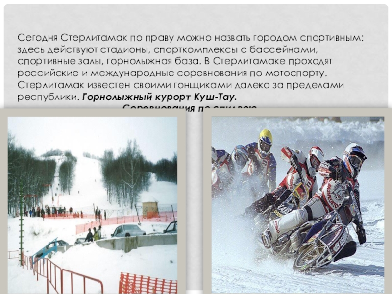 Слайд 19Сегодня Стерлитамак по праву можно назвать городом спортивным: здесь действуют стадионы,